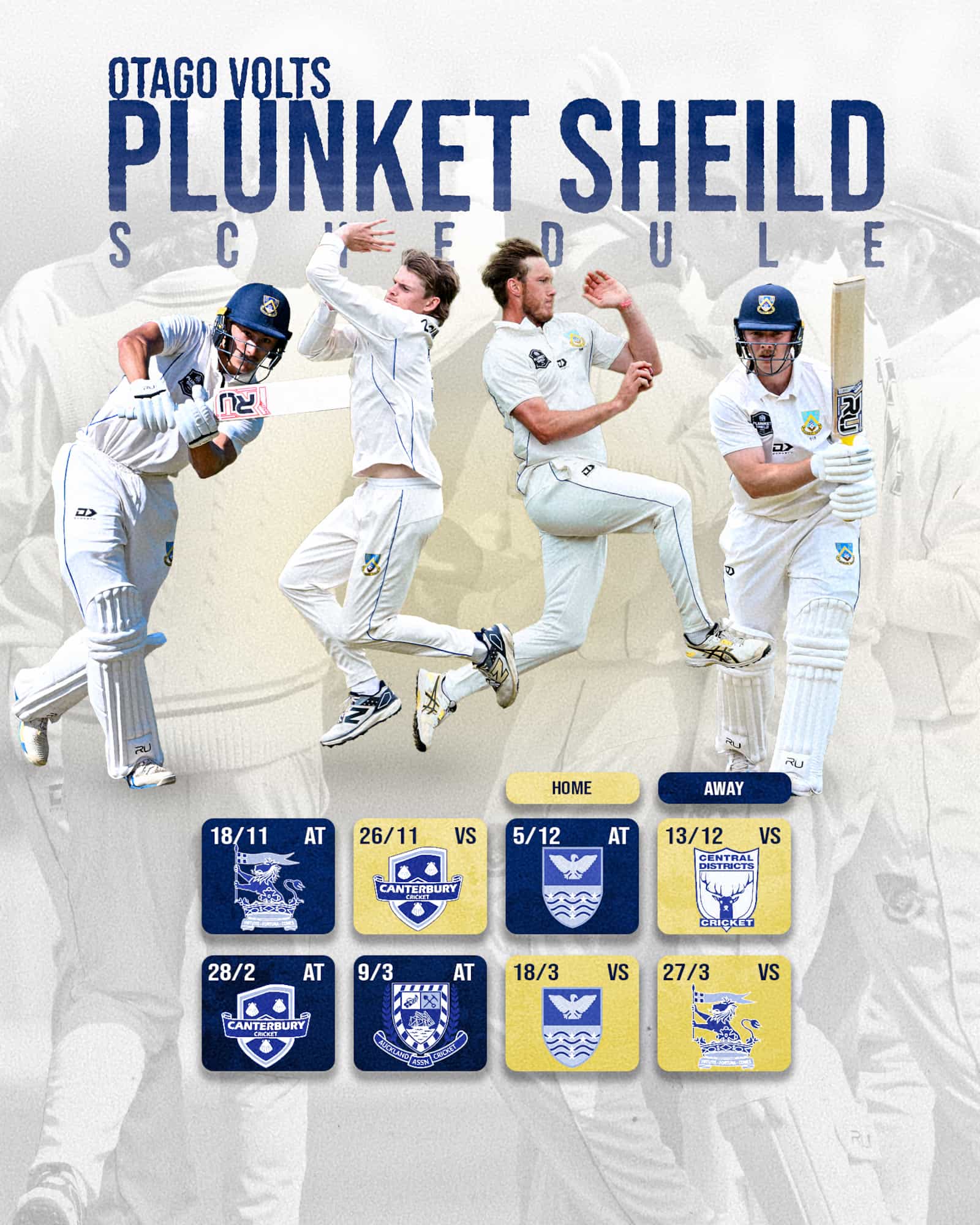 It all begins on 18 November at the Basin Reserve against Wellington, before the Volts return home for their first University Oval match against Canterbury on 26 November. Dunedin fans will have four home chances to get behind their team this summer.